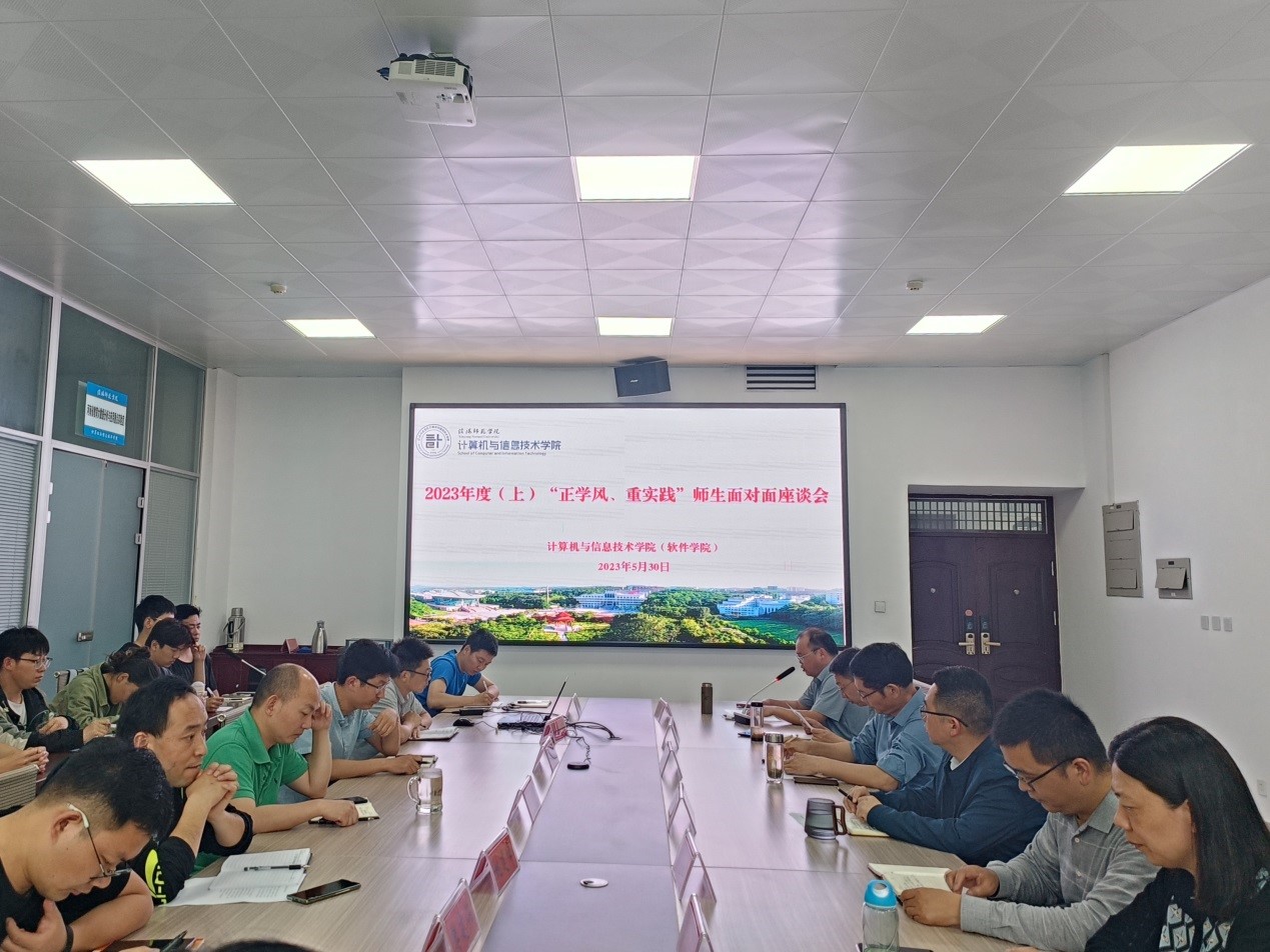 2023年5月30日下午,公司在计科楼203会议室召开“正学风 重实践”师生面对面座谈会。公司班子全体成员、系(实验室)主任、实习实训中心主任、教学工作秘书、辅导员、各班级员工代表40余人参加了座谈会。会议由教学副经理刘道华主持。