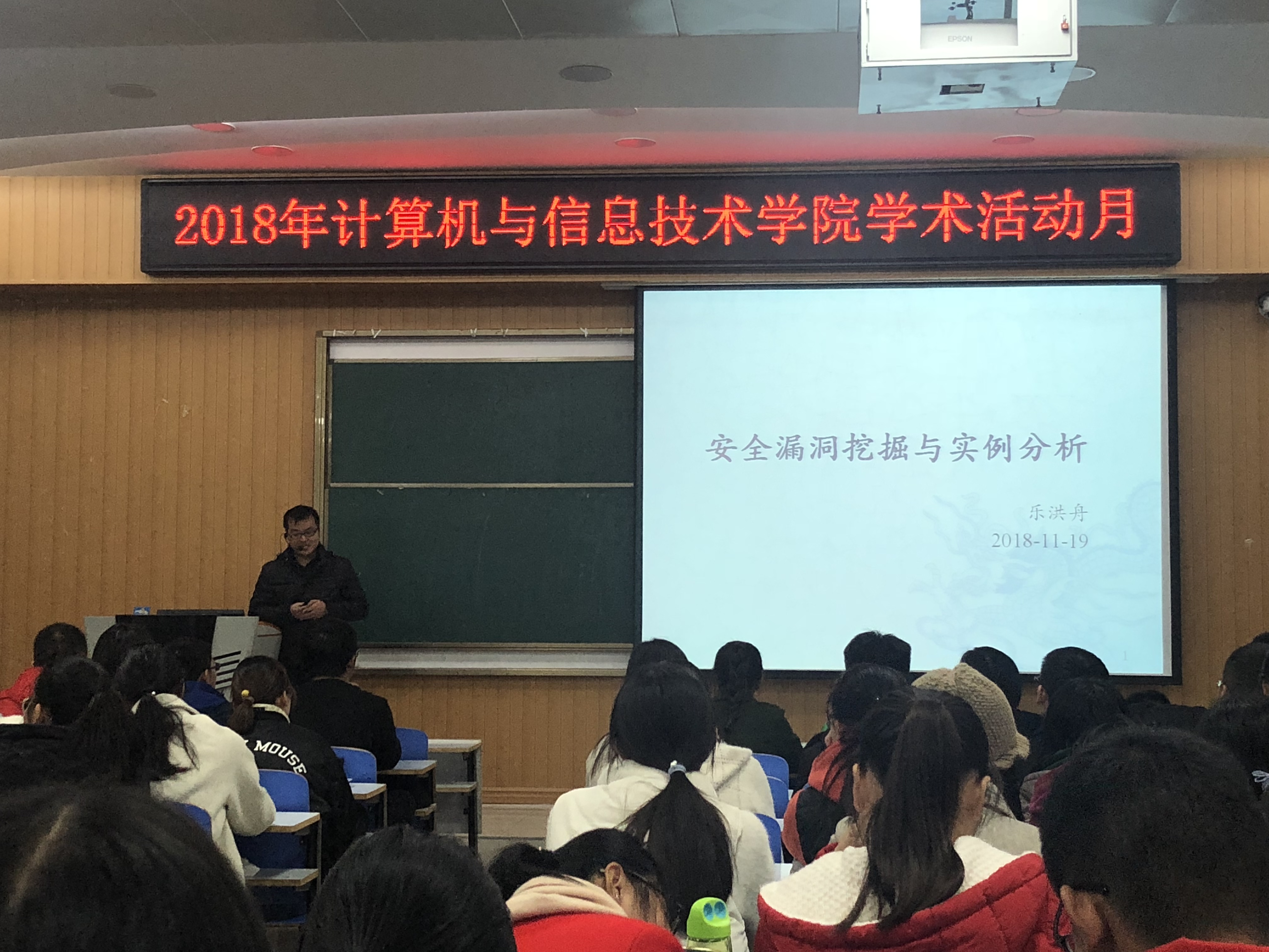 11月19日下午,信阳师范公司best365足球官网尤赵鹏、乐洪舟博士在计算机楼107教室分别作了题为“面向闪存的纠错码方法研究”和“安全漏洞挖掘与实例分析”的学术报告。计算机公司副经理黄俊、冯岩和李国梁等公司领导、公司部分教师、全体研究生以及部分本科生参加了报告会。报告会由best365足球官网副经理冯岩主持。