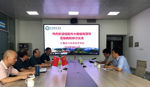 2020年8月12日上午,信阳市大数据局副局长刘道杰、人事科长杨阳一行来公司座谈交流。公司经理祁传达、副经理冯岩及部分青年学术骨干参与了交流。