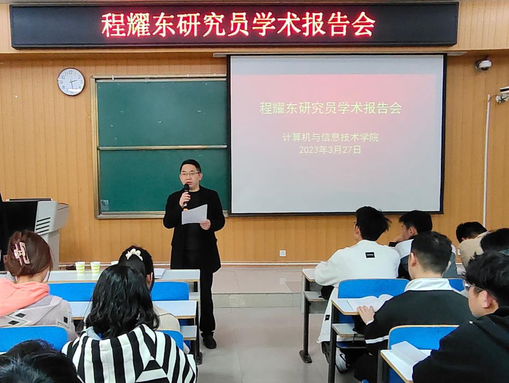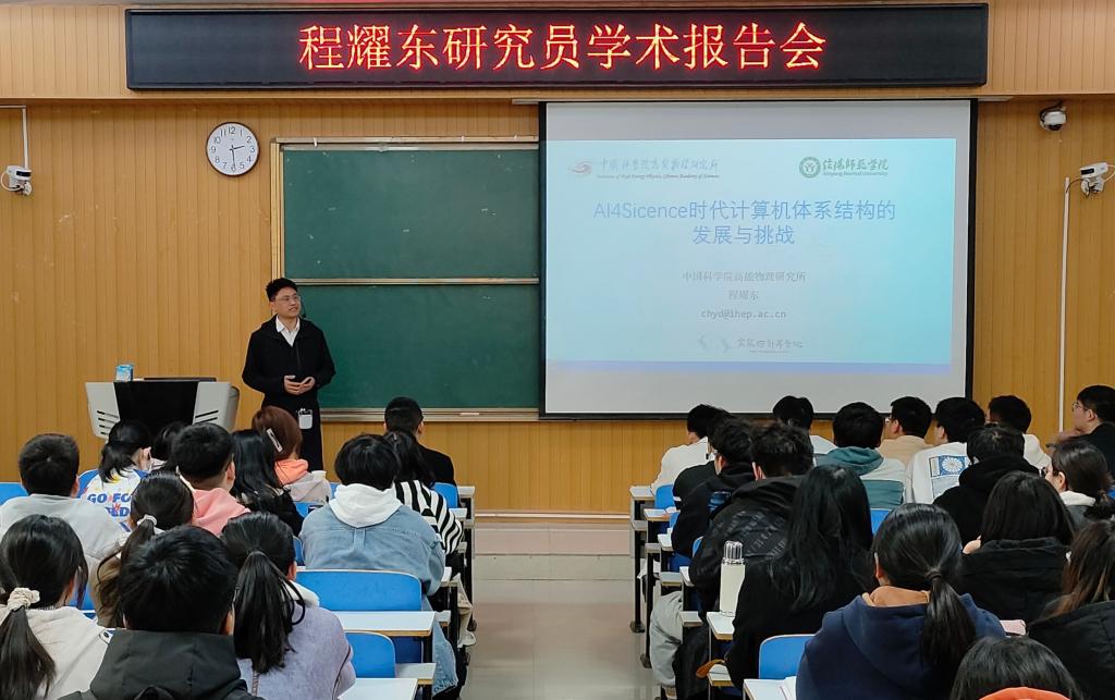 3月27日下午,应best365足球官网邀请,中国科公司高能物理研究所计算中心副主任程耀东研究员为公司师生作了题为“AI4Science时代计算机体系结构的发展与挑战”的学术报告。公司部分骨干教师、高年级研究生及本科生共计200余名员工聆听了此次报告。报告会由公司党委书记熊炎主持。