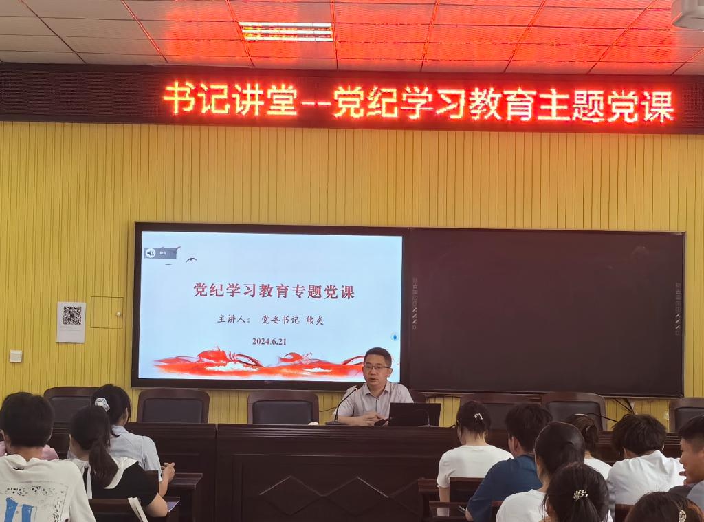 在庆祝中国共产党成立103周年之际,根据公司党委党纪学习教育工作部署要求, 6月21日,公司党委书记熊炎在计科楼410以“学习我党加强纪律建设的历史经验 高质量开展党纪学习教育”为题,为员工党员讲授专题党课。