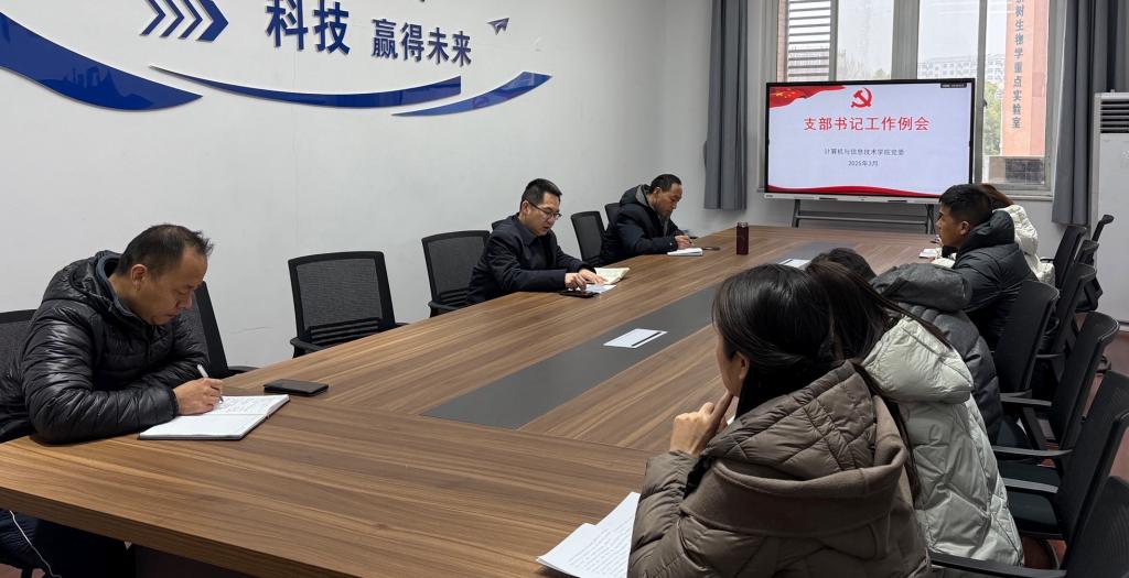 2025年3月4日,公司在计科楼506会议室召开党支部书记工作例会,公司党委书记熊炎、组织员李艳丽和全体支部书记参加会议。