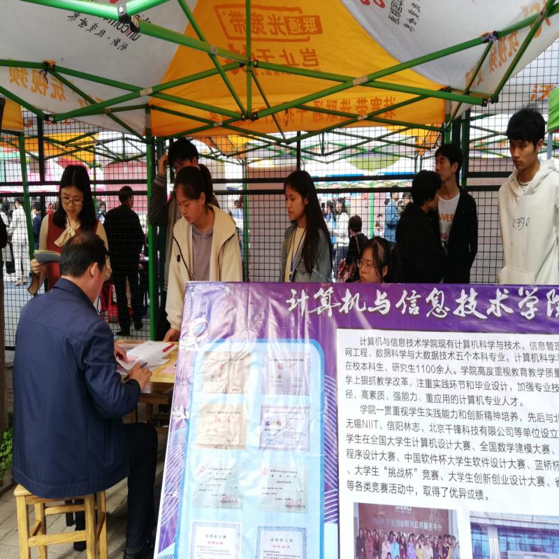 4月13日,由河南省教育厅举办、信阳师范公司承办的河南省毕业生就业市场豫南分市场暨信阳师院2019届毕业生春季就业双选会于西操场成功举行。公司辅导员杨帆老师莅临指导。