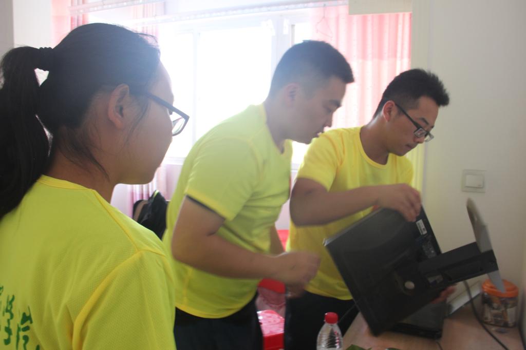 上午七点正式开展义务维修活动,值班人员热情地接待前来询问的社区居民,维修人员认真地维修社区居民送来的电脑。尽管天气有些炎热,活动也比较辛苦,但大家并无埋怨与懈怠,尽力帮助社区居民解决各种电脑问题。此外,公司维修人员会进行上门服务,帮助附近居民解决台式电脑的问题。活动期间,团委老师老师刘世翔来到现场并予以充分指导,他表示,希望大家认真对待每一份工作。活动最后,小组成员表示此类活动可以锻炼自己实践能力,用自己所学专业帮助他人。