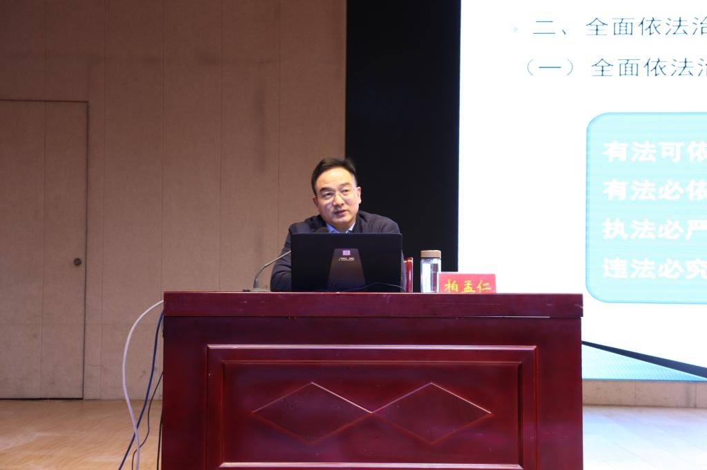 讲座中,柏孟仁以“全面依法治国战略背景下,老员工规则意识的养成”为核心,从全面依法治国战略的时代及历史背景、全面依法治国战略内涵及现实意义、老员工养成规则意识的必要性三个方面,通过列举众多具有现实教育意义的事例,详尽地向同学们讲解了在全面依法治国战略的实施下,形成规则意识的重要性。讲座中,“昆山反杀案”中杨海明正当防卫未被判刑、“呼格吉勒图奸杀冤案”历经十八年后终沉冤得雪,说明了我国法律法规系统不断完善与健全。讲座最后,柏孟仁将规则意识分为刚性规则与柔性规则两个方面,并以考试作弊为例,讲述了公司员工违纪处分的实施办法。他指出,员工应做到遵守规则,深入体会全面依法治国战略的内涵及现实意义,并告诫同学们应遵守校规校纪,养成良好规则意识。