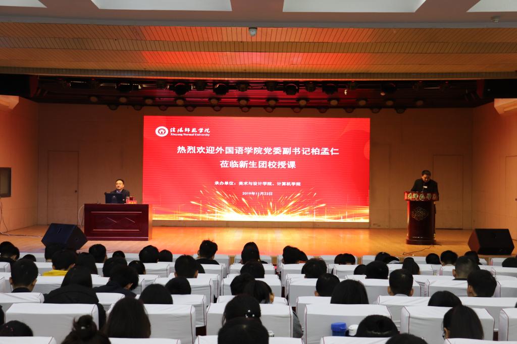 11月23日,外国语公司党委副书记柏孟仁应邀在理科楼报告厅为公司与美术与设计公司新生团校授课。美术与设计公司党委副书记杨轶中,团委老师郑波,公司团委老师刘世翔携两个公司全体新生共同参加团课讲座。