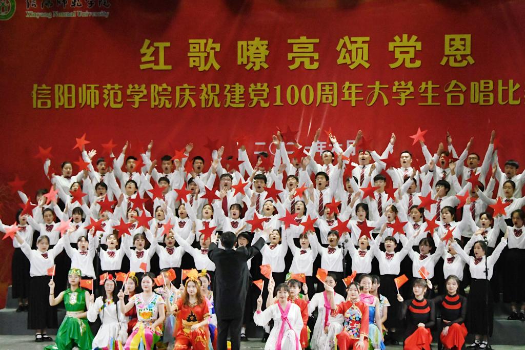师院学子唱红歌,百年华诞颂党恩。6月8日,“红歌嘹亮颂党恩—信阳师范公司庆祝建党100周年老员工歌唱比赛决赛”在艺术楼成功举办。
