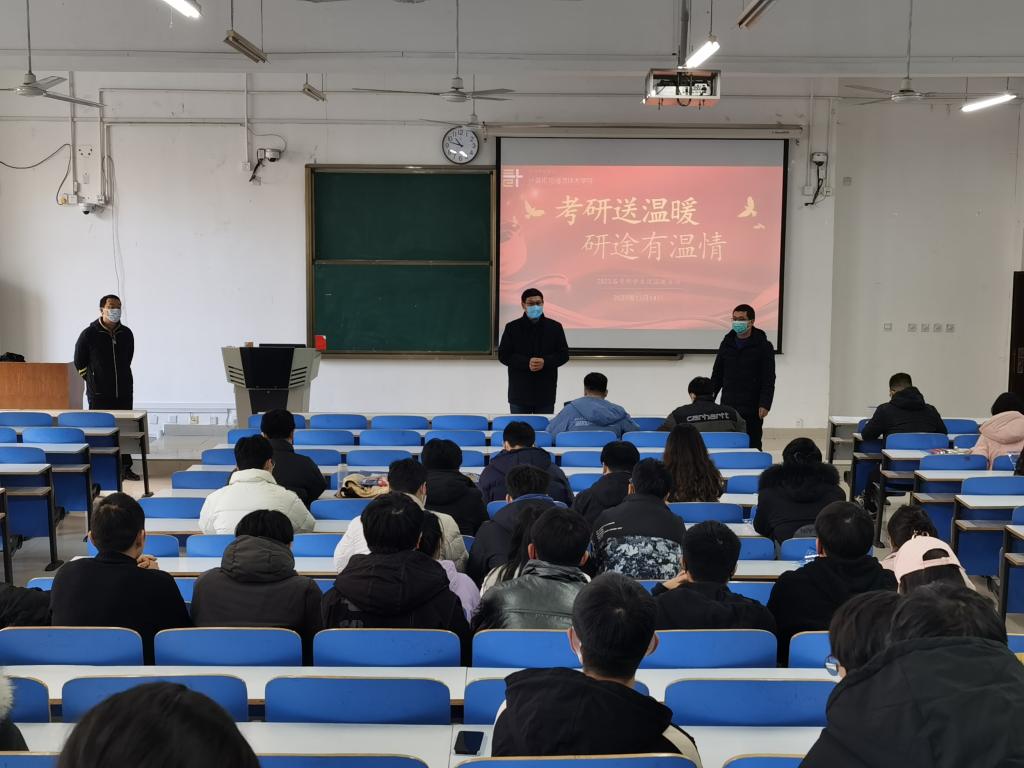 12月14日上午,公司开展为考研员工送温暖活动,公司领导班子成员分别来到自己联系的2019级各班级,看望、慰问考研员工并送去祝福。