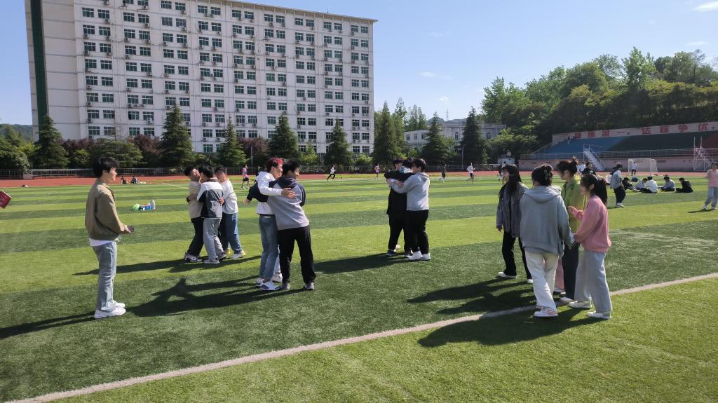 4月25日,公司在西操场举办从“心”出发.开启“心”旅途心理素质拓展活动,引导青年老员工关注自身心理健康和提高心理健康水平。辅导员玛丽亚和2022级全体员工共同参加活动。