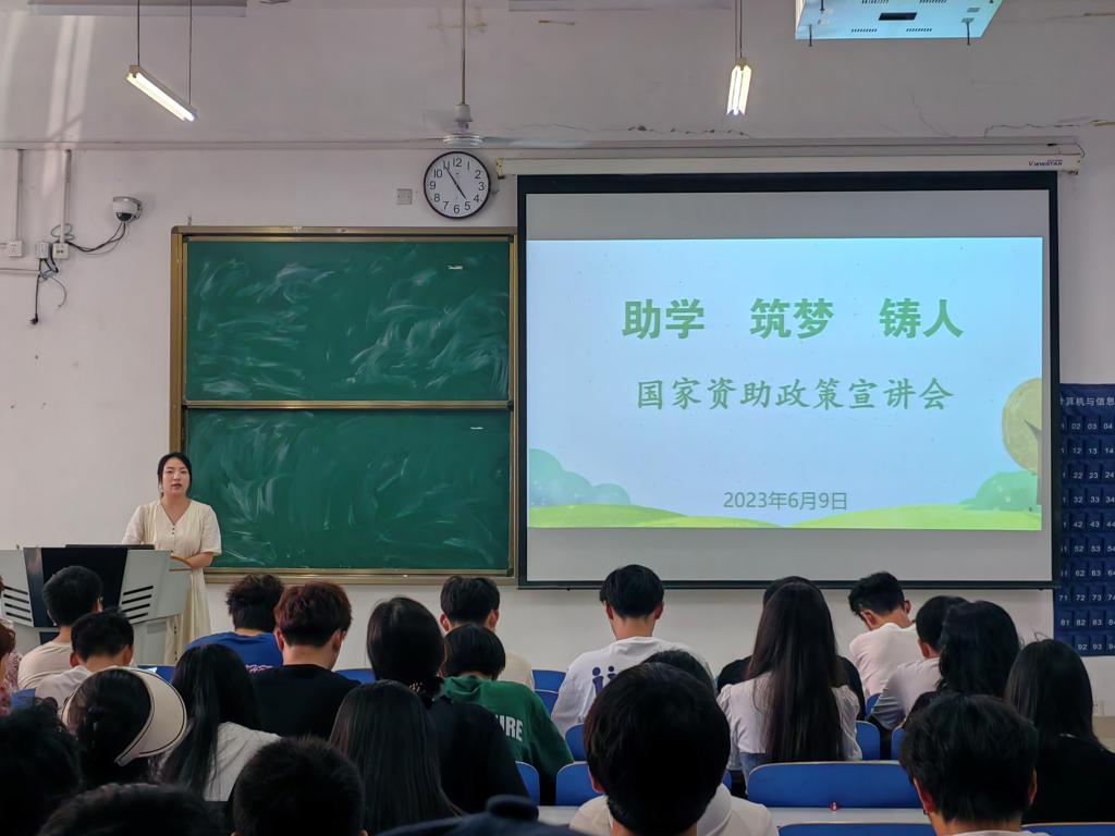 6月9日下午4:50,公司于计科楼104教室召开国家资助政策宣讲会。会议由公司辅导员易雯雯主持,部分员工代表参加此次会议。