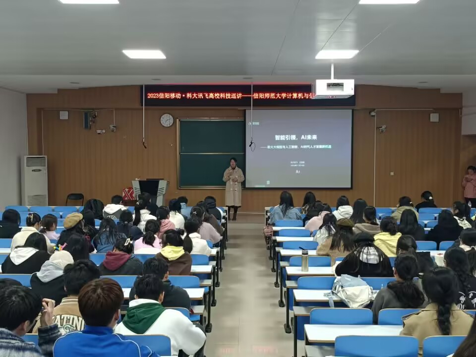 11月10日下午,信阳移动公司前往公司开展主题为“智能引领,AI未来”科技巡讲,讲座在计算机楼107教室举行。本次讲座由公司代表王亚楠主讲,2022级员工参会。