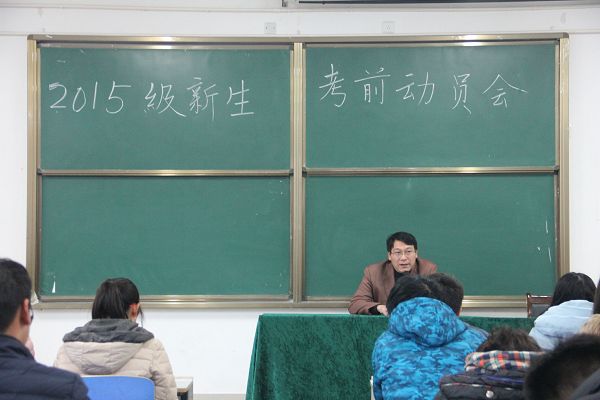 为端正考风、严肃考纪,调动同学们的考试积极性和热情,12月31号,计算机公司在计科楼107教室成功举行了“2015级新生考前动员大会”。计算机公司党委副书记谢蕾、团总支书记杨帆、辅导员陈星雨及全体大一新生参加此次考前动员会。