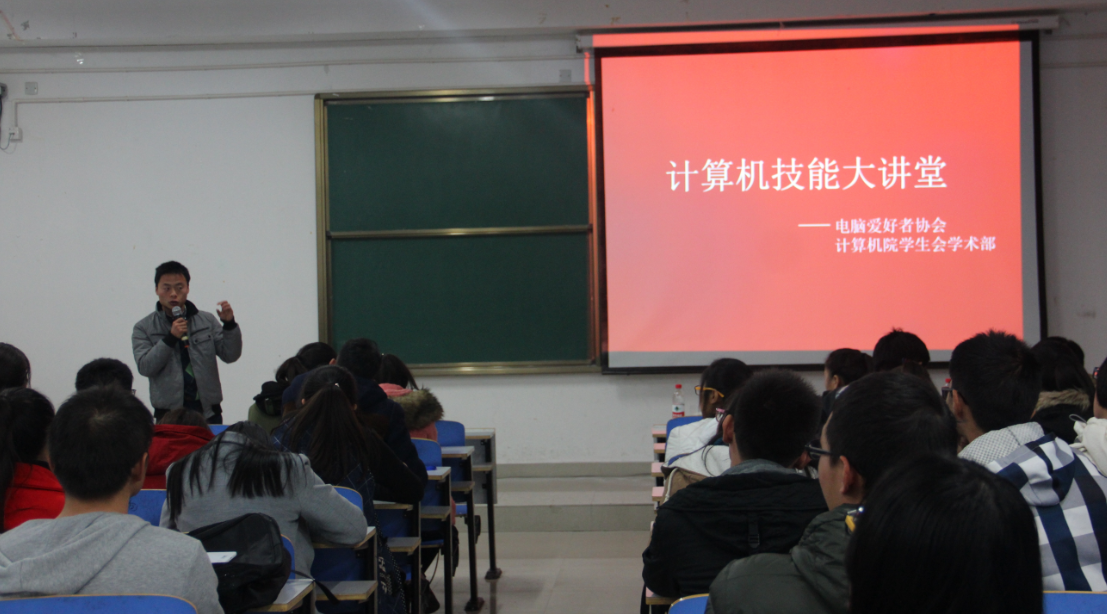 11月20日晚,由计算机公司电脑爱好者协会和计算机公司员工会学术部举办的计算机技能大讲堂,在计科楼107成功举行。电脑爱好者协会指导老师黄氏东应邀出席,计算机公司员工会和电脑爱好者协会全体成员参加此次讲堂。此次技能大讲堂由电脑爱好者协会技术部部长焦安楠授课。