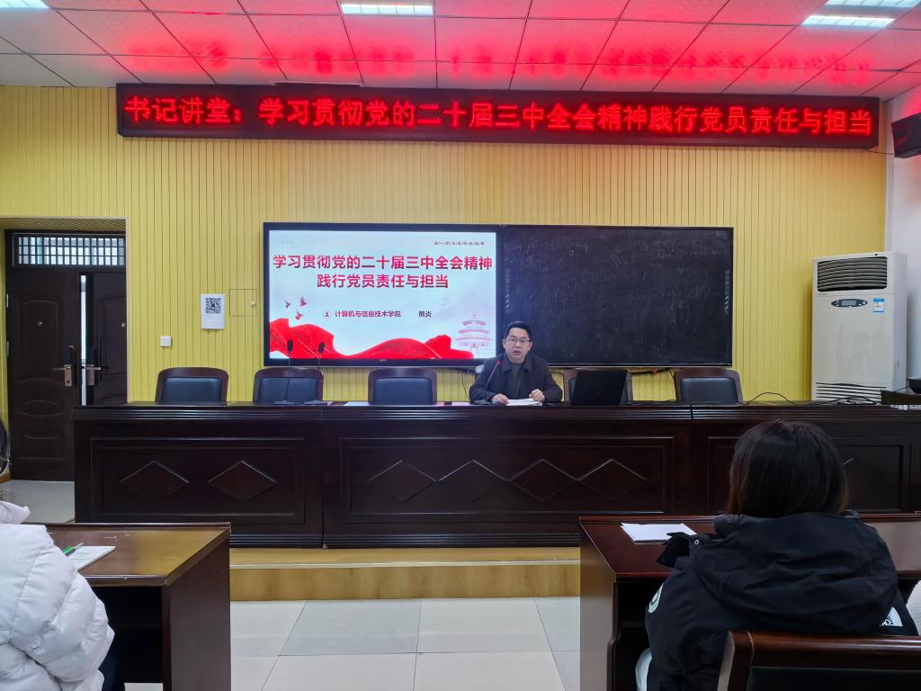 12月3日下午,公司党委书记熊炎在计科楼410会议室以《学习贯彻党的二十届三中全会精神 践行党员责任与担当》为题,为公司员工党员讲授学习贯彻党的二十届三中全会精神专题党课。