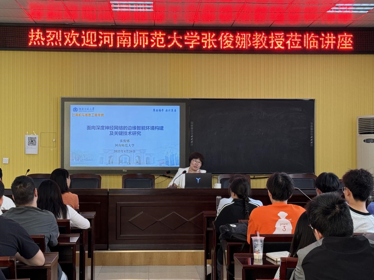 张俊娜从边缘计算与人工智能融合发展的趋势出发,剖析了当前边缘智能部署面临的算力约束、能耗优化等关键挑战。通过视频实例演示,张教授生动阐释了团队研发的轻量化模型压缩算法在智能安防、工业质检等场景的应用效能。报告特别强调了"云-边-端"协同架构的设计理念,引发了在场师生对分布式人工智能技术路线的热烈讨论。