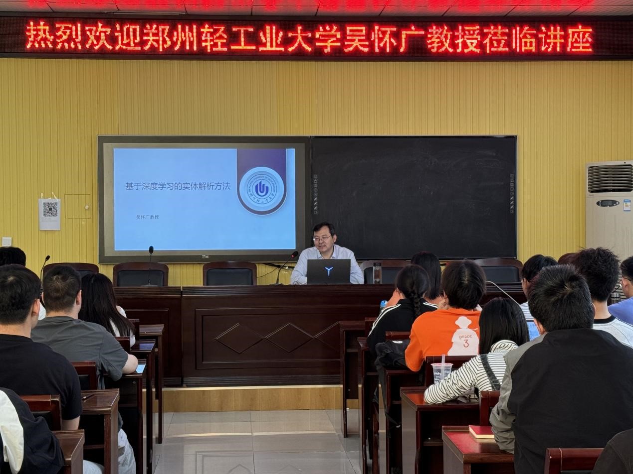 4月26日上午,应公司邀请,郑州轻工业大学教授吴怀广、河南师范大学教授张俊娜在该院410会议室分别作了题为“基于深度学习的实体解析方法”、“面向深度神经网络的边缘智能环境构建及关键技术研究”的学术报告。报告分别由公司冯岩教授和李艳灵教授主持,公司教师、研究生聆听了讲座。