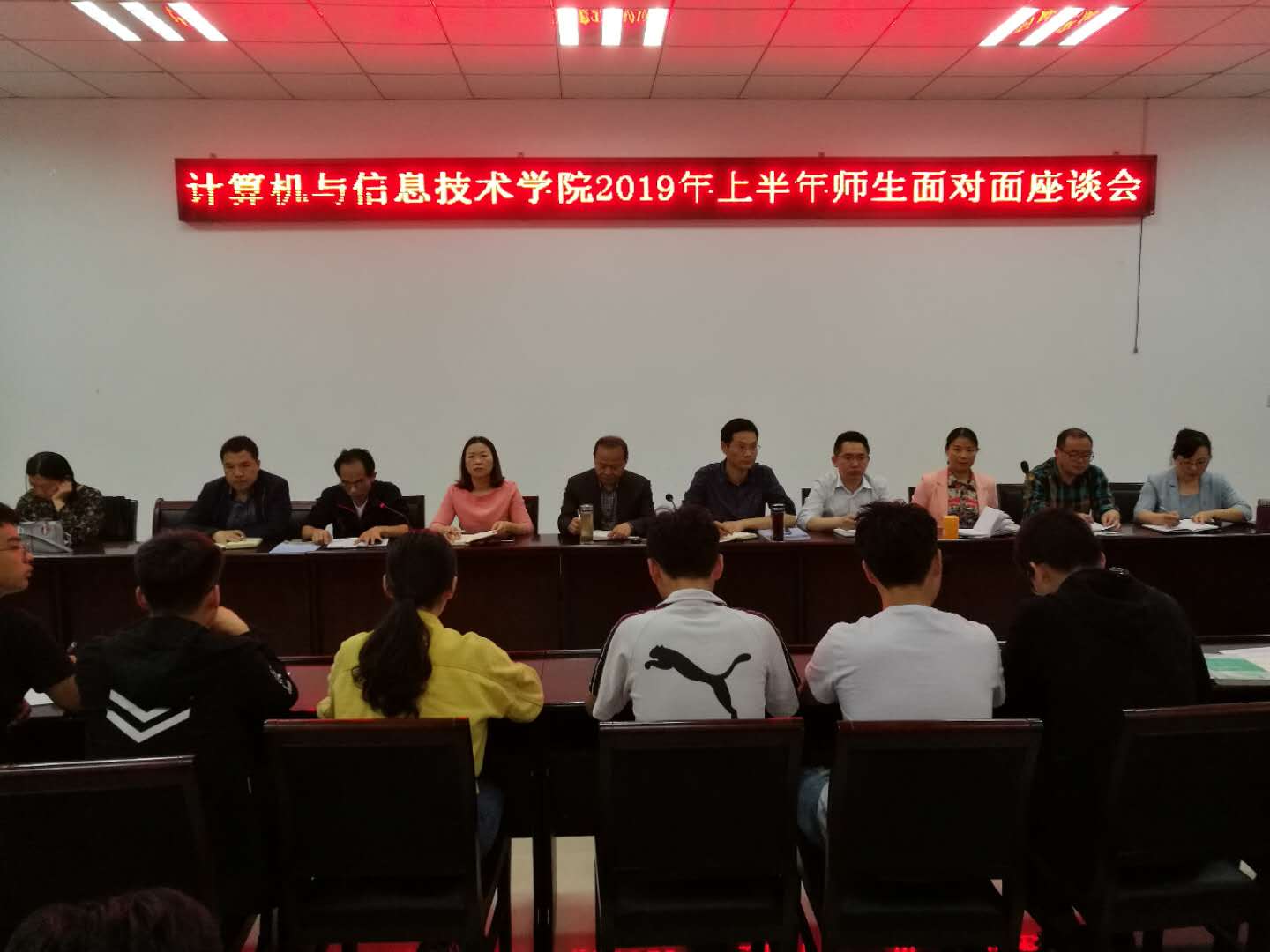 5月13日晚上,best365足球官网2019学年上半年师生面对面座谈会在计算机楼410会议室举行。公司全体领导班子成员,各专业负责人和员工代表共50余人参加了座谈会,会议由公司副经理黄俊主持。